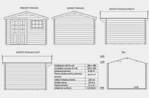 Zahradní domek 286x286 cm,dvojité prosklené dveře, okno,sedlová střecha.Síla stěny 28 mm.
